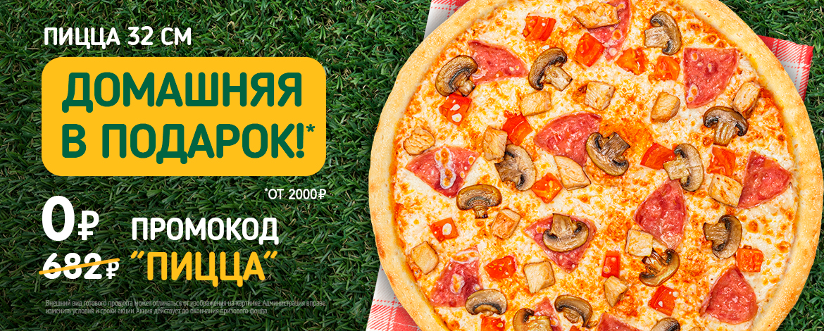 В меню можно выбрать множество вариантов начинок, а также один из размеров пиццы: 32 или 40 см, что является нашей особенностью.