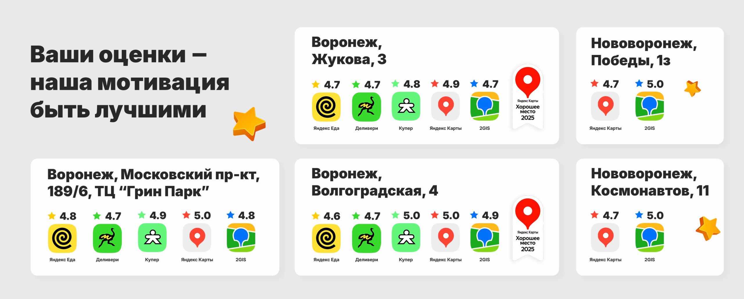 Для наших клиентов, мы предлагаем большой выбор роллов в Воронеже с доставкой до двери. Регулярно проводим выгодные акции и предоставляем скидки постоянным клиентам. Мы тщательно следим за качеством продукции и поддерживаем высокий уровень услуг.