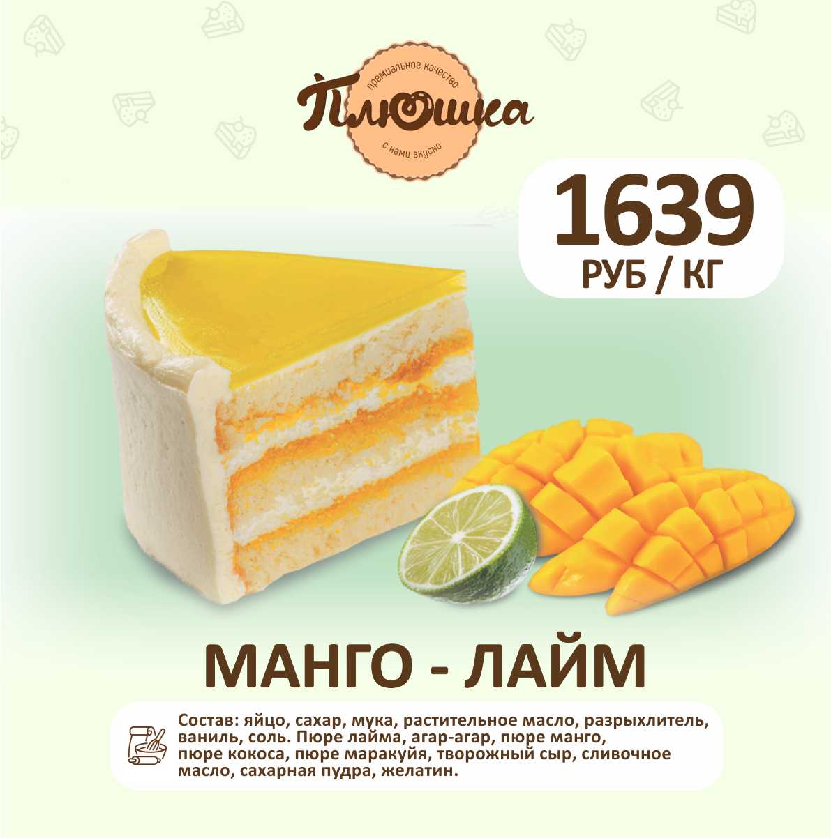 Яйцо, сахар, мука, растительное масло, разрыхлитель, ваниль, соль. Пюре лаима, агар-агар, пюре манго, пюре кокоса, пюре маракуия, творожный сыр, сливочное масло, сахарная пудра, желатин.
